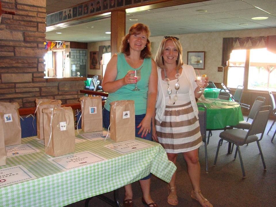Claudia O'Neil, left, and Dorothy Garcia prepare for a meat raffle at the Sandy Beach Yacht Club's Father's Day dinner, which was held on Friday, June 14.