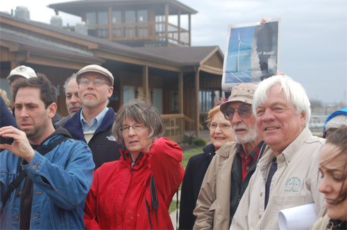 Members of the Grand Island Riverside-Salem congregation joined 30 environmental activists at the Buffalo waterfront on April 16. The church was one of the sponsors of the Sierra Club's "Turn, Not Burn" campaign press conference.