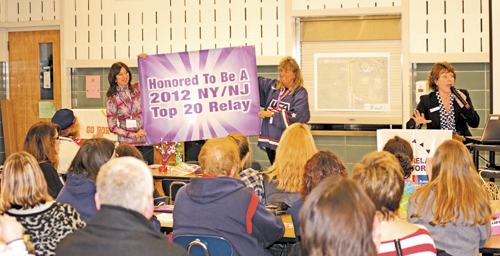 New teams and veteran Relayers gathered at Grand Island High School to award medals for 2012 and to begin the 2013 event, which will have an Olympic theme of "Going for the Gold."