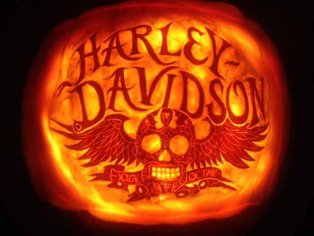 Congratulations to the Harley Davidson pumpkin, which took first place in Niagara Frontier Publications' recent carving/decorating contest. The big pumpkin eating the small pumpkin finished in second place, while the green witch pumpkin ended up in third.