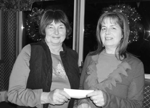Linda Isenhart and the Zonta Club of Grand Island presented a check for $1,500 to Ann Dahl of the Grand Island Neighbors Foundation to help needy families in the town.
