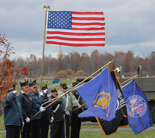 Islanders celebrated a windy Veterans Day at the Memorial Wall on Bedell Road last Friday.