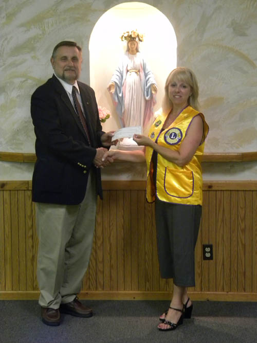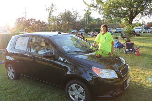 Amy Stewart visited Tuesday's Town Commons concert series to help support the Miracle League of Grand Island and Western New York's effort to raise money for an adaptive baseball diamond in Veterans Park for ballplayers with disabilities.