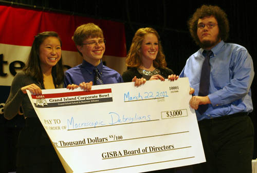 A last-minute decision to put a Corporate Bowl team together turned into a $3,000 profit for four Grand Island High School students.