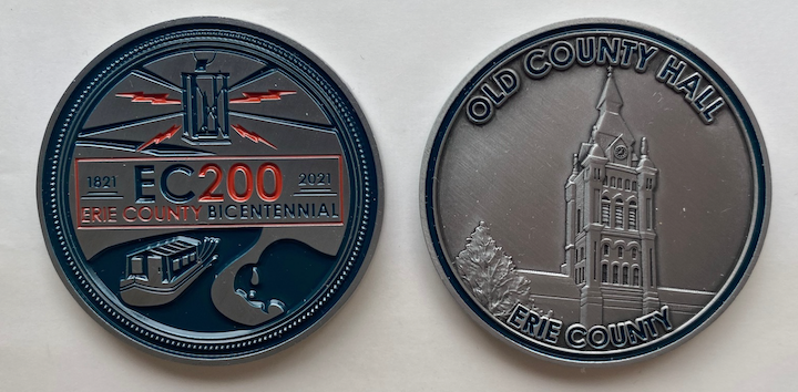 In collaboration with the Erie County Bicentennial Committee (EC200), the Buffalo History Museum will hold EC200 coin redemption days March 2 through April 2. The coins feature the EC200 logo on one side and, on the other, Old County Hall, as inspired by artist Lawrence D. McIntyre's pen-and-ink sketch from his Buffalo News Sunday series "Area Landmarks."