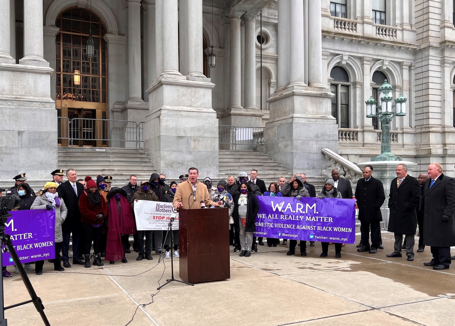 Erie County District Attorney John J. Flynn, along with Buffalo Police Deputy Commissioner Joseph Gramaglia and New York City Police Commissioner Dermot Shea, joined members of the New York State Association of Chiefs of Police Inc., prosecutors, advocacy groups, and the family members of victims of violent crime to urge New York state legislators to modify recently enacted criminal justice reform laws. The announcement was held Thursday afternoon outside of the New York State Capitol building in Albany.
