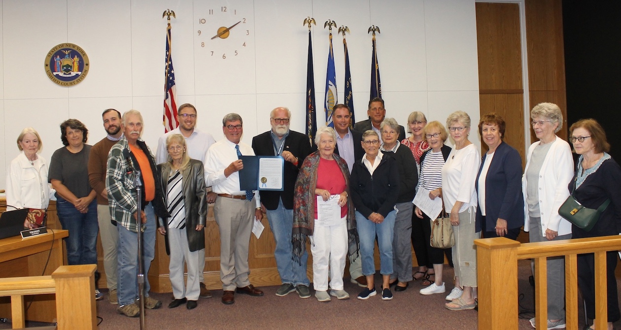 Members of the Grand Island Town Board present a proclamation to members of the Grand Island Historical Society at Town Hall on Sept. 15 in honor of the 60th anniversary of the saving of River Lea.