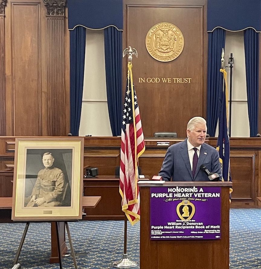 In honor of Purple Heart Appreciation Day, Erie County Clerk Michael P. Kearns recognized Erie County Purple Heart Recipients added to the William J. Donovan Purple Heart Book of Merit for 2024. No formal record of Purple Heart recipients in Erie County existed prior to 2018, when Kearns originated Erie County's version of the "Book of Merit."