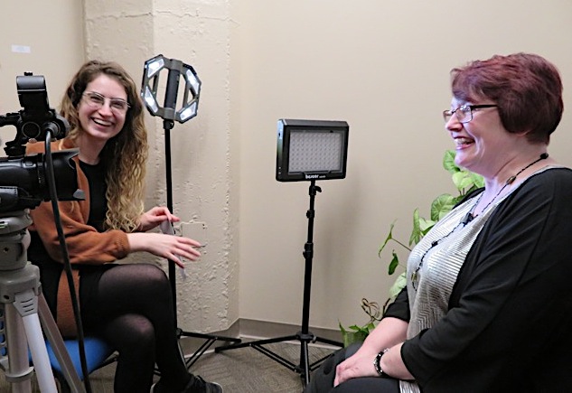 Niagara County Legislature Chairwoman Becky Wydysh, seated behind the desk, meets with YWCA of the Niagara Frontier Vice President of Programs Mary Brennan-Taylor and CEO Kathleen Granchelli to discuss several of the YWCA's life-saving services.