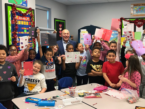 Assemblyman Angelo Morinello joined third-graders from Niagara Street Elementary School to kick of his second annual "Valentines for Seniors." This year's program already features over 10 local public and private elementary schools in the assemblyman's district making valentines for seniors in the community who are in assisted living facilities, senior center participants or Meals on Wheels clients.