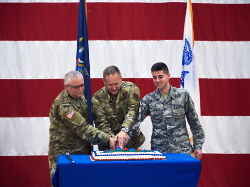 A 21-year-old airman with two years of service, and a 59-year-old soldier who has served since 1984 cut the birthday cake on Friday, Dec. 14, as New York National Guard headquarters in Latham marked the 383rd birthday of America's oldest military force.