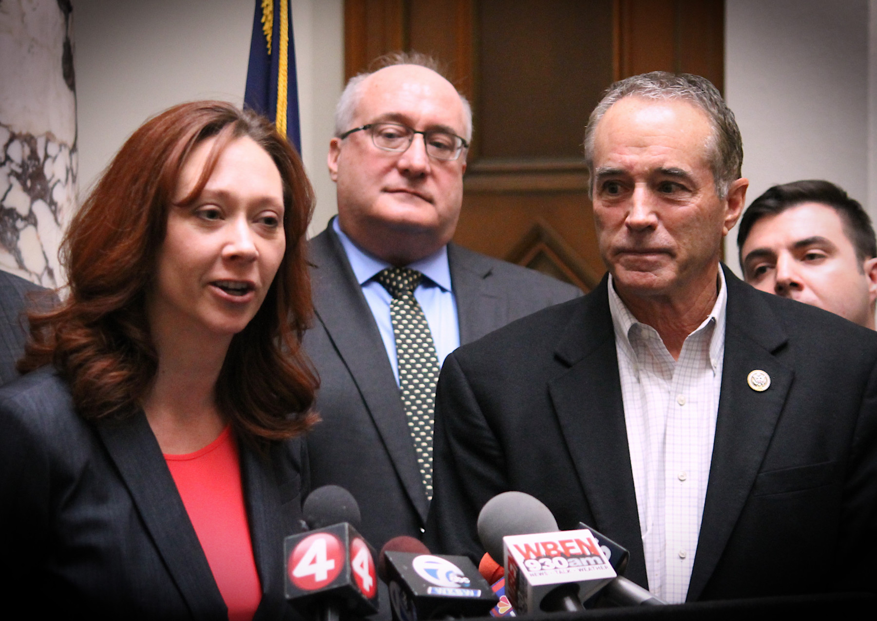 Congressman Brian Higgins, New York State Sen. Chris Jacobs, Assemblymember Angelo Morinello and Grand Island Supervisor Nate McMurray are together pushing for conversion to cashless tolling at the Grand Island bridges.