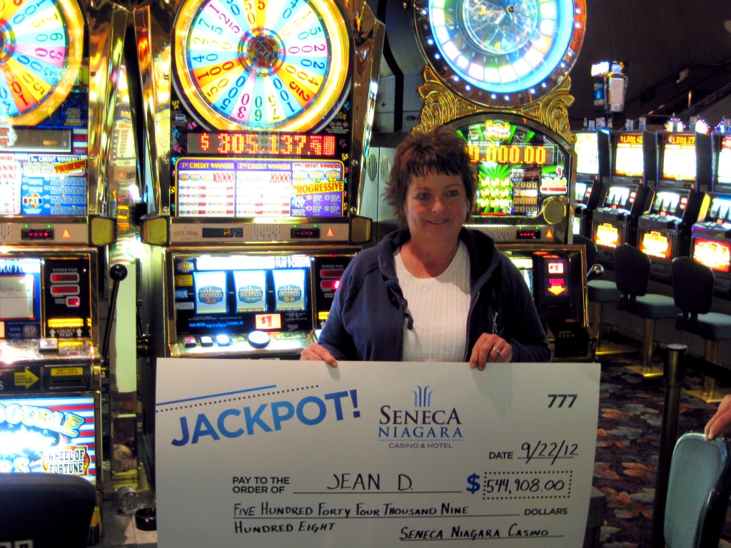 A Western New York woman won a progressive jackpot of $544,908 this past weekend at Seneca Niagara Casino & Hotel. The lucky pull came at 11:25 p.m. on Saturday, Sept. 22, on a "MegaJackpots" "Wheel of Fortune" "3x 4x 5x" dollar slot machine, located near the center of the main gaming floor.
