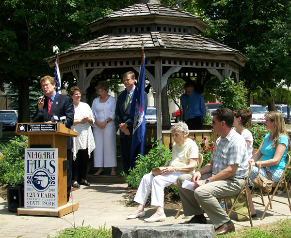 The nation's oldest state park, Niagara Falls State Park, celebrated its 125th anniversary on July 15, with a dedication of a refurbished pocket park to Thomas V. Welch as well as a concert by the Buffalo Philharmonic Orchestra in the Meadow on Goat Island.