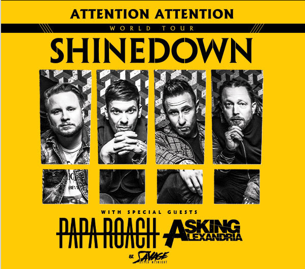 Shinedown with special guests Papa Roach, Asking Alexandria and Savage After Midnight, will bring their "Attention Attention" Tour to KeyBank Center at 6:15 p.m. Friday, Sept. 27.