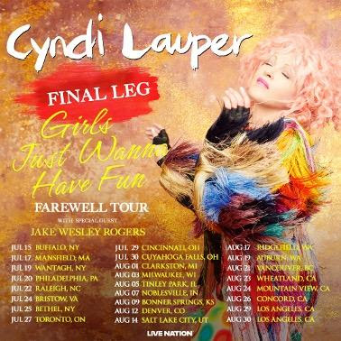 Cyndi Lauper announces the final leg of her extensive, year-long "Girls Just Wanna Have Fun Farewell Tour,: with 25 North American tour dates for this summer. The cross-continent trek of outdoor amphitheaters and performing arts centers includes a stop at Darien Lake on July 15.
