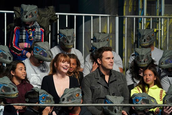 "American Ninja Warrior" welcomes special guests at the Los Angeles qualifier on Wednesday when dinosaurs from "Jurassic World: Fallen Kingdom" invade the course - along with a special appearance by the film's stars, Chris Pratt and Bryce Dallas Howard.