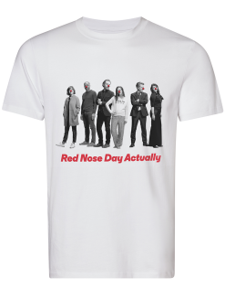 Comic Relief, the nonprofit behind Red Nose Day, has revealed a limited-edition "Red Nose Day Actually" T-shirt featuring cast members of the "Love Actually" reunion minifilm, set to air as part of the "Red Nose Day" (May 25) special on NBC. The T-shirt is produced in partnership with ethical clothing line UNIFORM. Proceeds of every shirt sold will support Red Nose Day, helping to further the mission of the campaign - to end child poverty, one nose at a time.