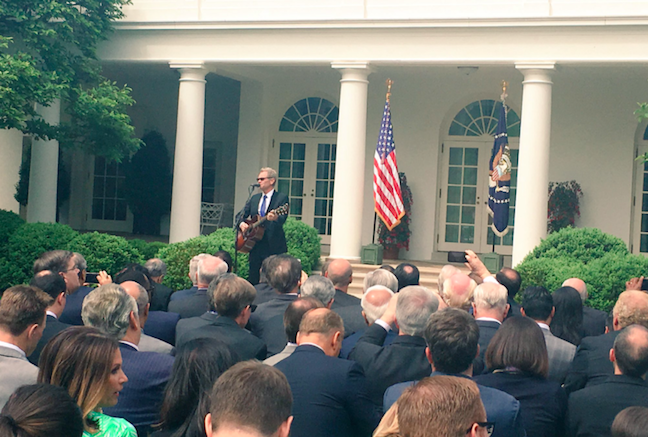 On Thursday, five-time Grammy-winning artist and songwriter Steven Curtis Chapman had the honor to perform at the 66th annual National Day of Prayer ceremony in Washington, D.C. Appearing before many faith leaders from around the U.S., Chapman performed two songs, "Great Is Thy Faithfulness" and "The Lord's Prayer." The ceremony was held in the Rose Garden at the White House.
