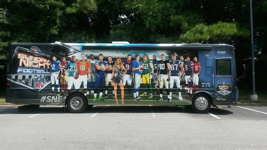 NBC Sports Group's "Sunday Night Football" bus returns this season to travel the country, visiting the host cities of all 17 "SNF" games, the "NFL Kickoff" game in Seattle, and NBC's Wild Card and Divisional Playoff games. The "SNF" bus also will be on-site all week leading up to the crowning of the Super Bowl XLIX champion in Arizona.