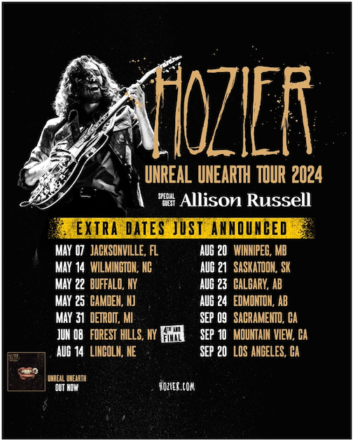 Due to remarkable demand across the U.S. and Canada, Hozier is adding 14 new shows to his most extensive headlining run in North America - "The Unreal Unearth Tour" - signaling an incredibly momentous touring year for the award-winning, RIAA-Diamond certified singer/songwriter.