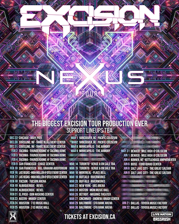 Today, DJ and producer Excision announced his upcoming "Nexus" tour. Produced by Live Nation and Insomniac, the tour kicks off in Chicago on Dec. 22, and includes a stop at Buffalo RiverWorks on Tuesday, March 19, and Wednesday, March 20, 2024.