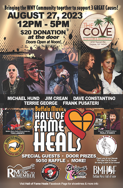 Three 501(c)(3) nonprofits - Music To Remember WNY, Bridget's Battle, and WNY Drummers for Homeless People - will join together for a concert and fundraising event Sunday, Aug. 27, at The Cove Seafood and Banquets, located at 4701 Transit Road Buffalo. The event runs from noon until 5 p.m. and will include special door prizes, basket raffles and a 50/50 split.