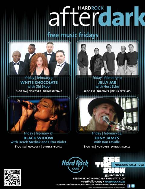 This week's "Free Music Friday" at the Hard Rock Café, Niagara Falls USA, features White Chocolate with Old Skool. The event begins at 8 p.m. at 333 Prospect St., Niagara Falls.