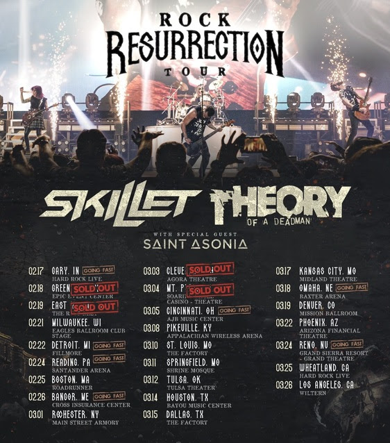 Today, 17-times-Platinum rock band Skillet's "Dominion: Day of Destiny (Deluxe Edition)" is available today as they launch the "Rock Resurrection Tour" tonight in Gary, Indiana, with co-headliner Theory of A Deadman and special guest Saint Asonia.