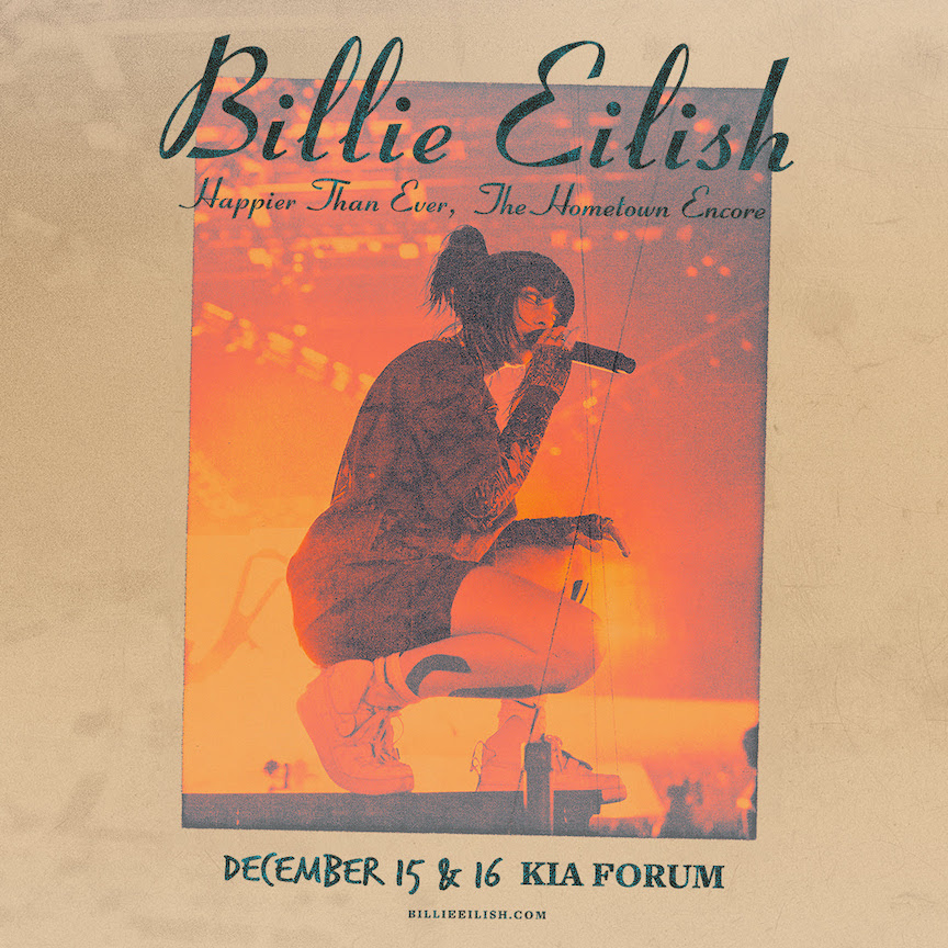 On Tuesday, Academy and seven-time Grammy award-winning artist and songwriter Billie Eilish announced two special hometown shows - "Happier Than Ever, The Hometown Encore" - as a celebration to her successful global tour this year. Produced by Live Nation, the shows take place Dec. 15-16 at the Kia Forum in Inglewood, California.