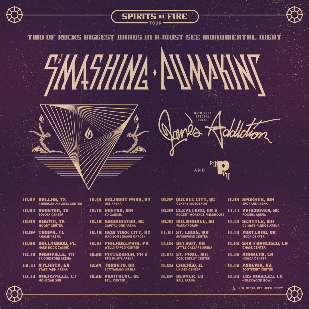 The Smashing Pumpkins announced their North American arena tour with special guests Jane's Addiction. Produced by Live Nation, the 32-date "Spirits On Fire Tour" will commence Oct. 2 in Dallas and conclude Nov. 19 in Los Angeles at the Hollywood Bowl.