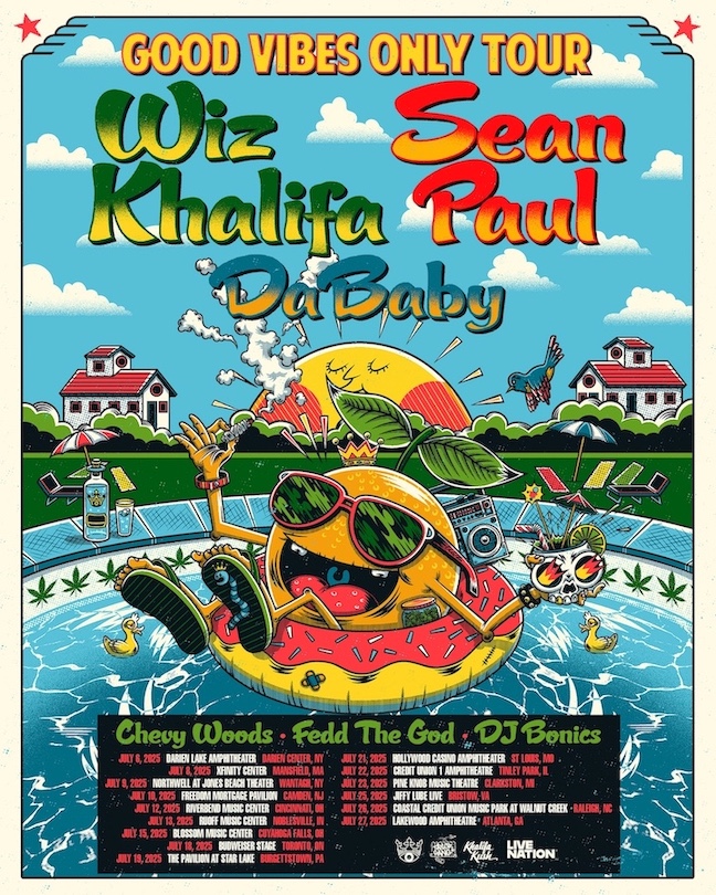 Today, Wiz Khalifa and Sean Paul announced their 2025 co-headlining "Good Vibes Only" tour across North America this summer, featuring special guest DaBaby and support from Chevy Woods, Fedd the God and DJ Bonics.