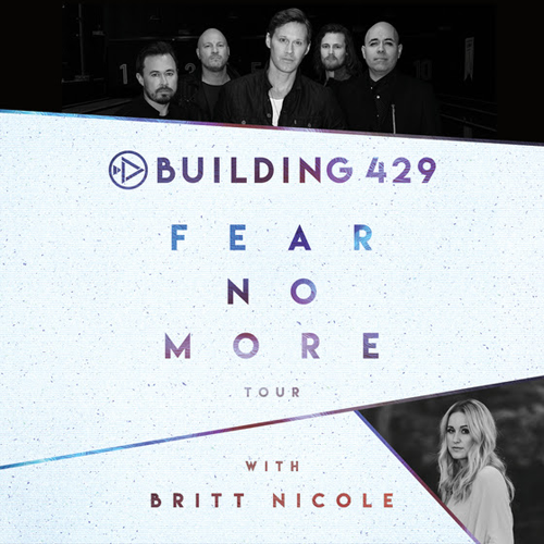 Building 429 will embark on the "Fear No More Tour" this fall. Supporting the tour will be pop songstress and fellow Grammy nominee Britt Nicole. The tour announcement comes on the heels of an exclusive touring partnership announcement uniting the GMA Dove Award-winning band with the largest producer of live Christian events, Premier Productions. Tickets go on sale on Tuesday, Aug. 6, at PremierProductions.com.