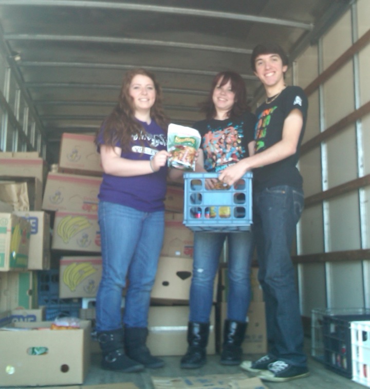 Niagara Catholic Jr./Sr. High School students recently volunteered with the U.S. Postal Carriers food drive. Pictured, from left, are Niagara Catholic students Shannon Lawson, Alexandra Lawson and Zachary Sicoli.