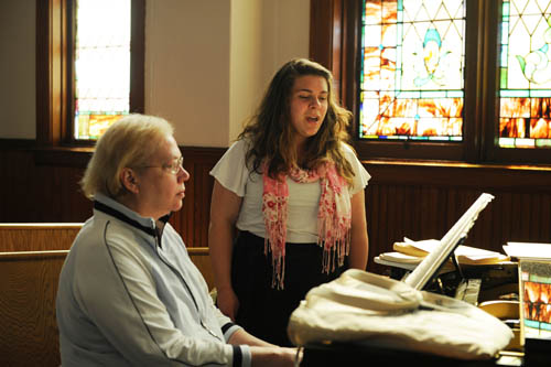 Kelly Moje, a member of the Praise Band at Ransomville United Methodist Church, is shown in a recent solo audition at the church, under the direction of Ellie Seib, conductor of the Buffalo Niagara Youth Chorus.