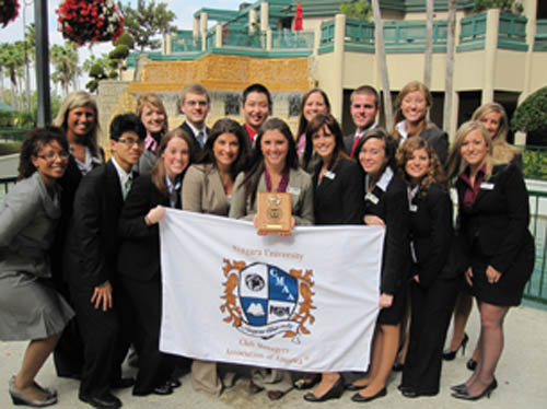 For the second straight year, the Club Managers Association of America's Student Chapter of the Year resides on Monteagle Ridge. Niagara University's student chapter of the CMAA topped more than 50 other colleges and universities from throughout the country to receive the prestigious annual award at the association's National Conference in Orlando, Fla., on Feb. 25. Niagara's chapter also was presented with the Club of the Future Award during the event.