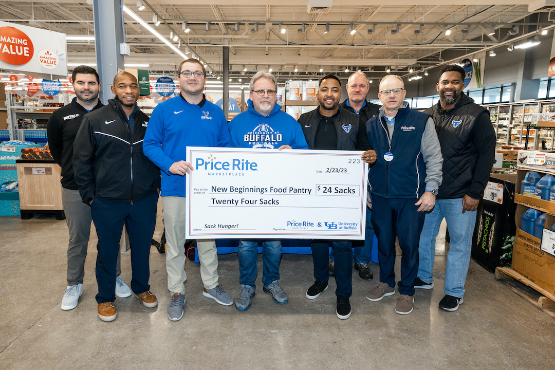 Price Rite Marketplace and the University at Buffalo football program donated 24 "sacks" of food to the New Beginnings Food Pantry this week. The donation is a result of the organizations' annual "Sack Hunger" campaign, designed to help tackle food insecurity in the Amherst community.