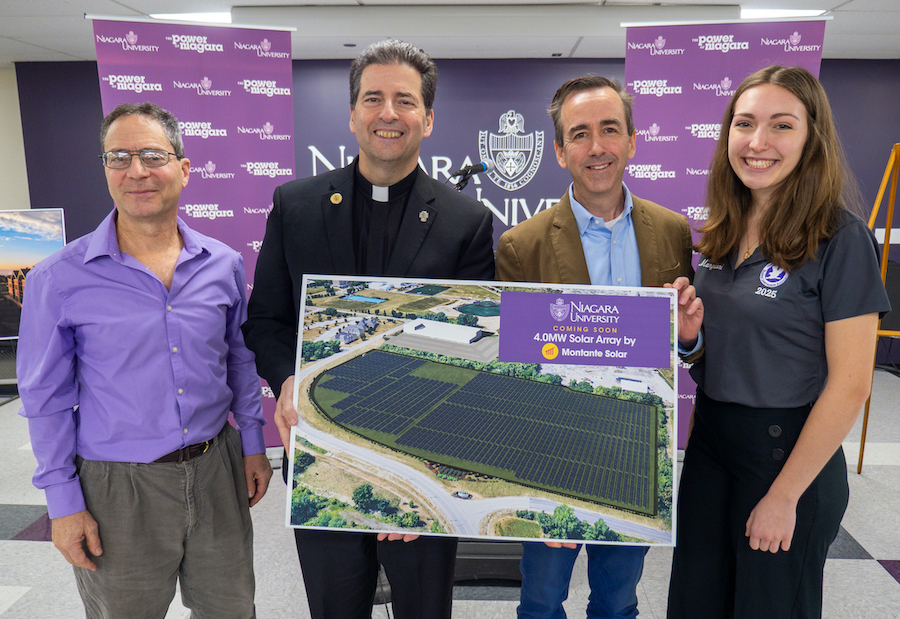 Niagara University announced it has partnered with Montante Solar to develop and maintain a solar array on its Lewiston campus. The array, which is expected to generate four megawatts at peak solar capacity, is targeted to be operational in October 2023 - and represents another major step forward in the university's commitment to environmental stewardship.