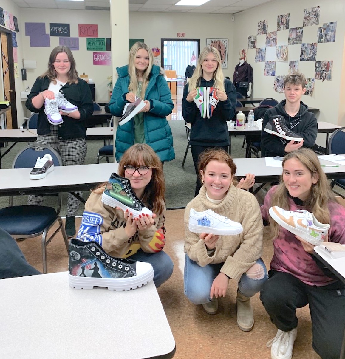 Students in Debbie Wilczak's fashion design/interior decorating program, at the Niagara Career and Technical Education Center, recently had the opportunity to customize their own sneakers. The students used leather or fabric paint to explore their artistic abilities to make their custom shoes. They used Disney and the movies "Star Wars" and "Scream" as their inspirations.