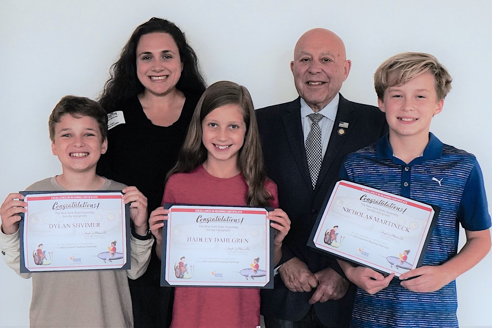 Assemblyman Angelo Morinello, who represents Grand Island in the 145th District of the New York State Assembly, presented certificates to three Veronica Connor Middle School students on Oct. 6 for their completion of the 2022 Summer Reading Challenge.