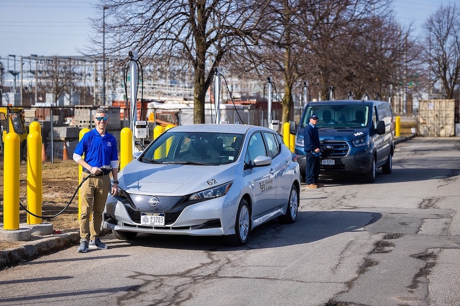 Big things are happening in the Beane parking lot on the University at Buffalo's North Campus, where a bank of new electric vehicle charging stations have been installed for university-owned vehicles. The project was completed in partnership with National Grid and the New York Power Authority.
