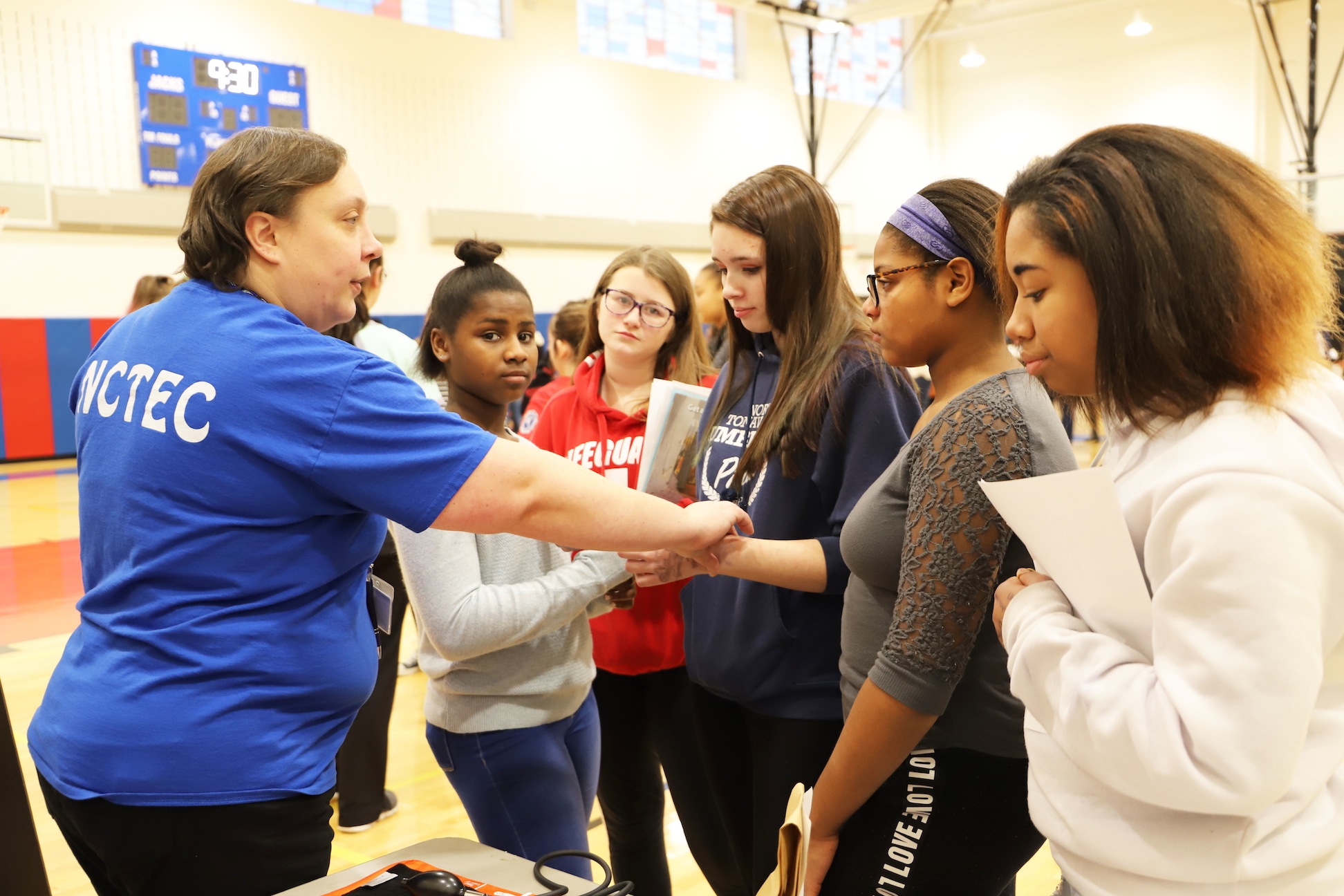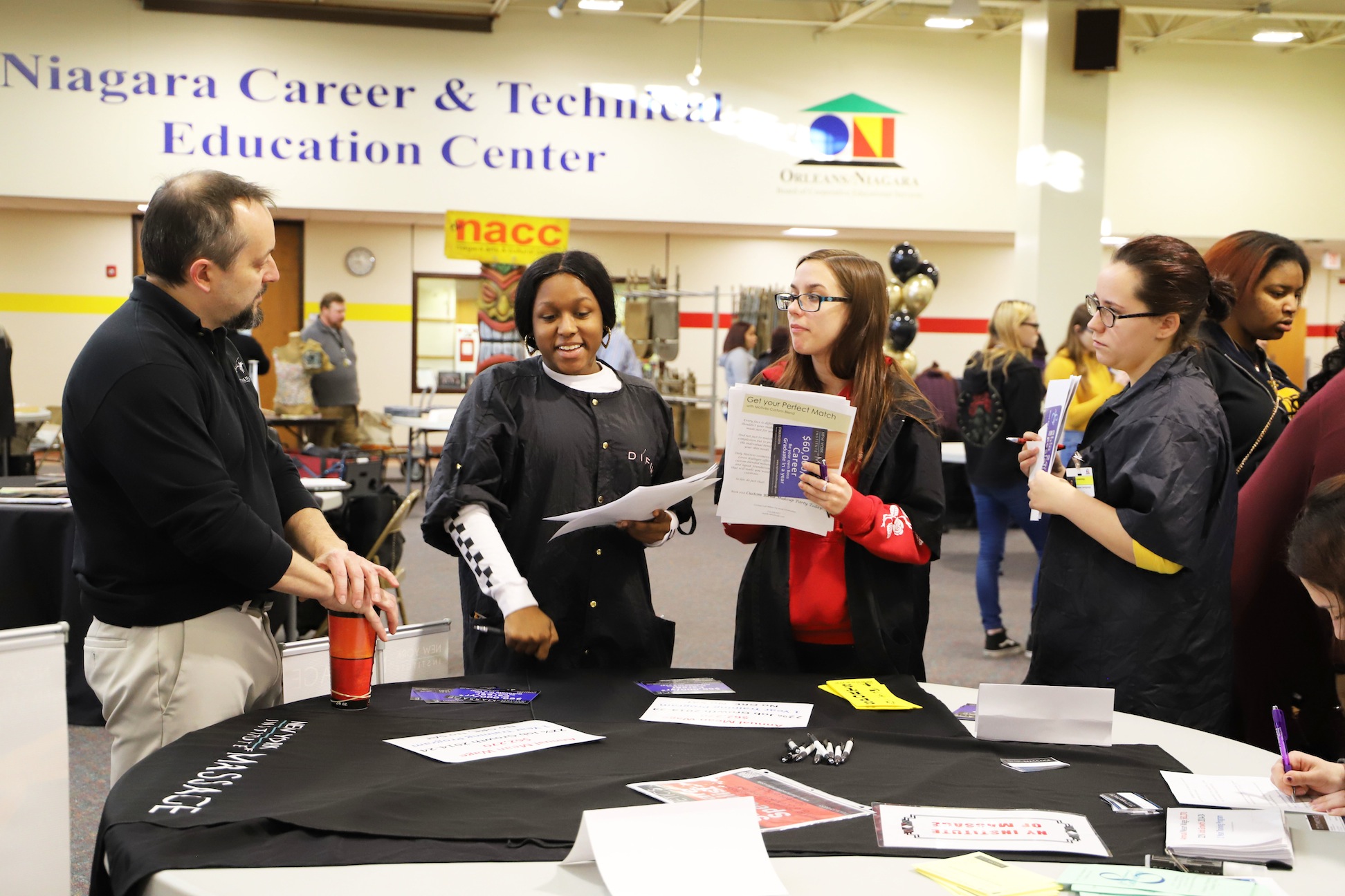 The cosmetology students at the Niagara Career and Technical Education Center spent their day talking to professionals in the fields of beauty, wellness and fashion. Their teachers, Jill Beatty, Cathy Bonaccorso and Pauline Carney, arranged for local vendors and colleges to come set up tables at the center and talk to the students.
