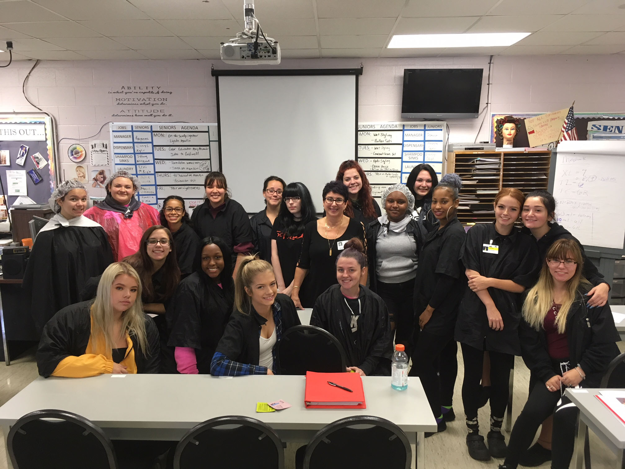 The cosmetology students in Pauline Carney's class at the Niagara Career and Technical Education Center recently had a guest in class.