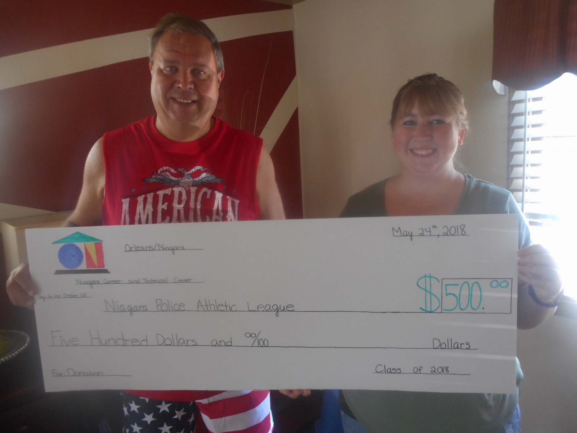 The generous culinary arts students at the Niagara Career and Technical Education Center recently donated $500 to the Niagara PAL (Police Athletic League) Association.