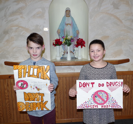 The Knights of Columbus Mary Star of the Sea Council No. 4752 presented a pair of Kaegebein Elementary School students with awards for winning the council's annual Substance Abuse Awareness Poster Contest.