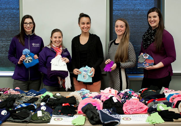 More than 80 sets of winter clothing items collected by Niagara University students were delivered Tuesday to Harry F. Abate Elementary School in Niagara Falls. The hats, gloves and scarves were collected by members of NU's Alpha Alpha Beta chapter of Kappa Delta Pi, the international honor society in education.