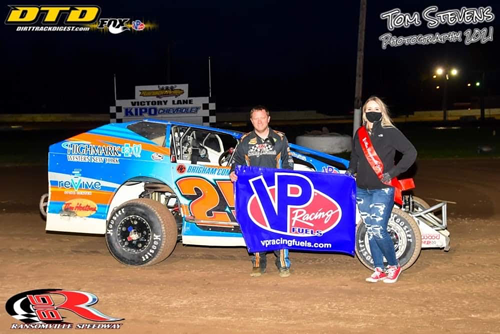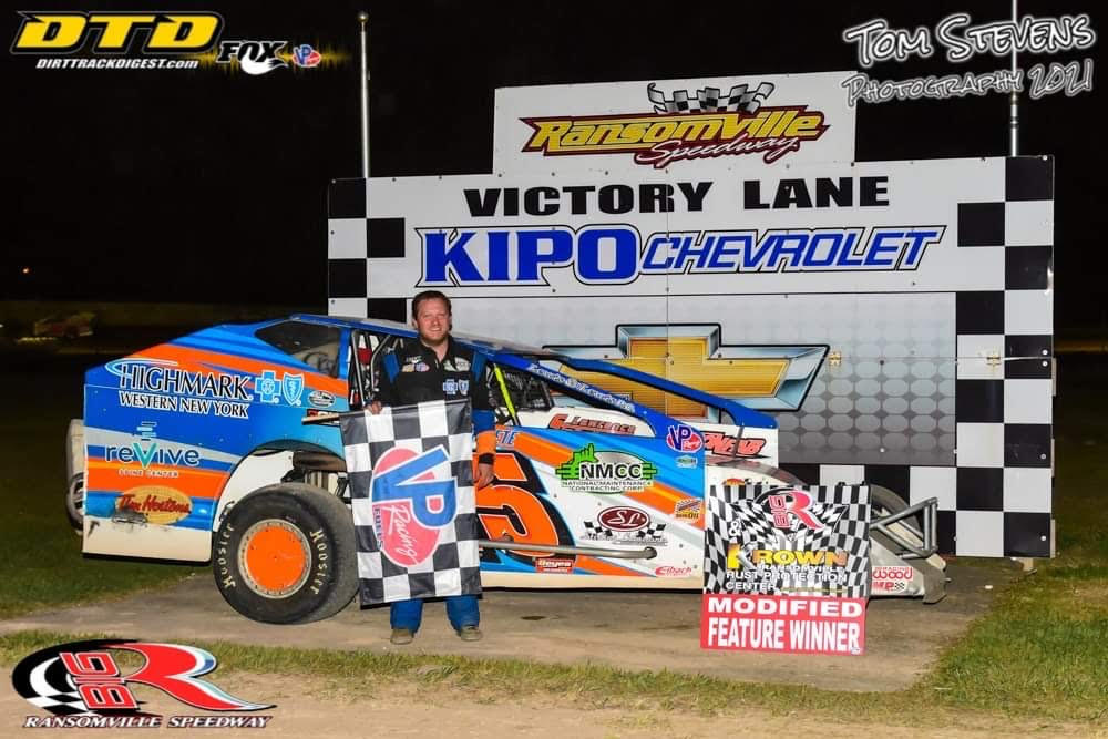 Brockport's James Sweeting picked up his first Krown Undercoating Modified feature of the 2021 season as Bailey Brothers Landscaping, Scott Perry Auctions, 87 Buf, and Triple T Towing presented the racing action at Ransomville Speedway on Friday night.