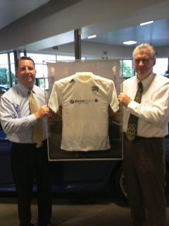 Representatives of the Niagara Pioneer Soccer League recently presented Towne BMW MINI with this display made by Hadley Exhibits of Buffalo. Towne is the first company to sponsor all of the NPSL travel teams jerseys. Hadley donated the beautiful display.