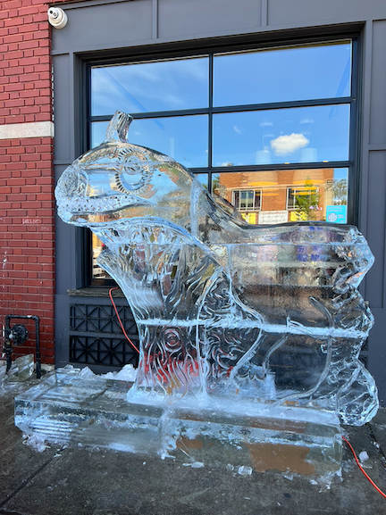On Saturday, the Buffalo Museum of Science held a live ice sculpting of a larger-than-life cryolophosaurus head at Churn Soft Serve & Coffee. The collaboration came as a recognition of the "Antarctic Dinosaurs: The Exhibition" experience nearing its final days at the museum.