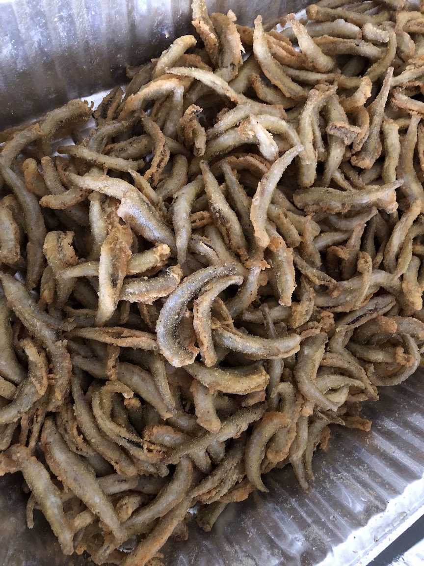 As predicted, the Lewiston Smelt Festival was about 55 and overcast on Friday. What was an unexpected surprise was the amount of mud within Academy Park, where the annual event relocated for 2019. To counter the conditions, the Niagara River Region Chamber of Commerce brought in an oversized party tent and buckets of wood chips.